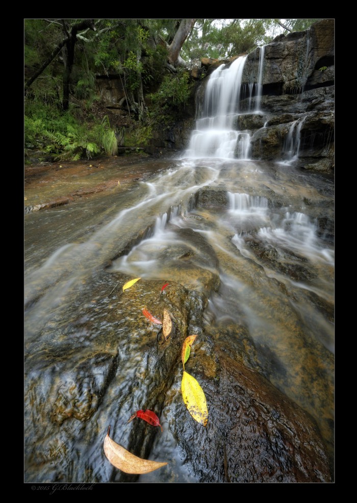 I'll admit that I did arrange these leaves, I was looking for something a bit more in the foreground than just a flow of water, there was plenty of nicely coloured leaves here, particularly as we head into the throws of Autumn, which reminds me, I must visit the Blue Mountains for the Autumn colours, I have never really had a good look at them, anyway, thats for another day