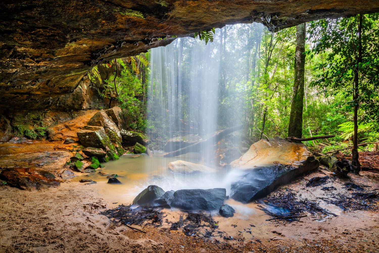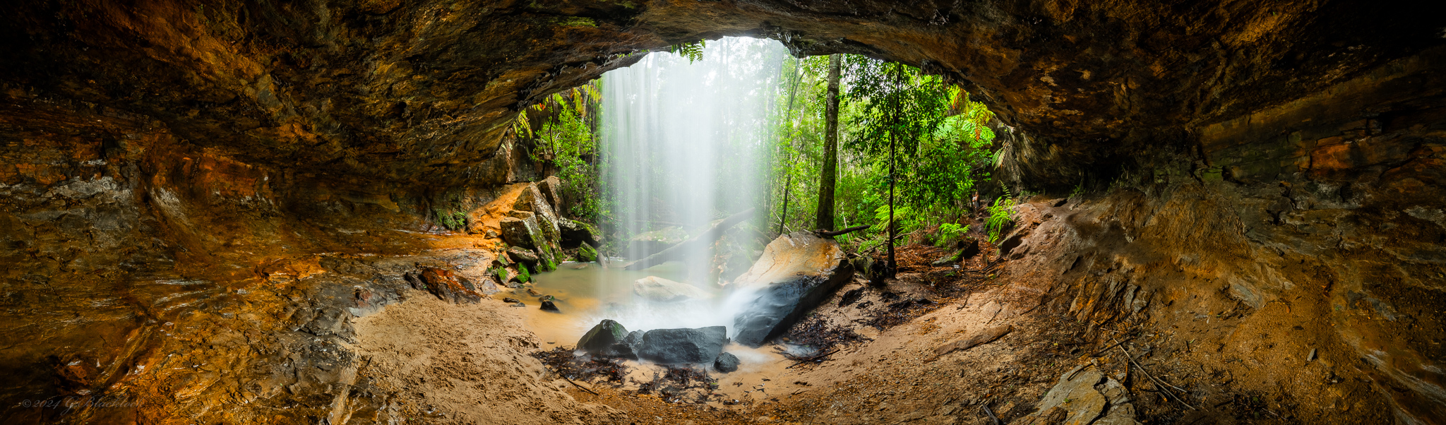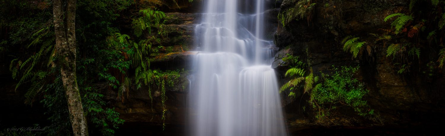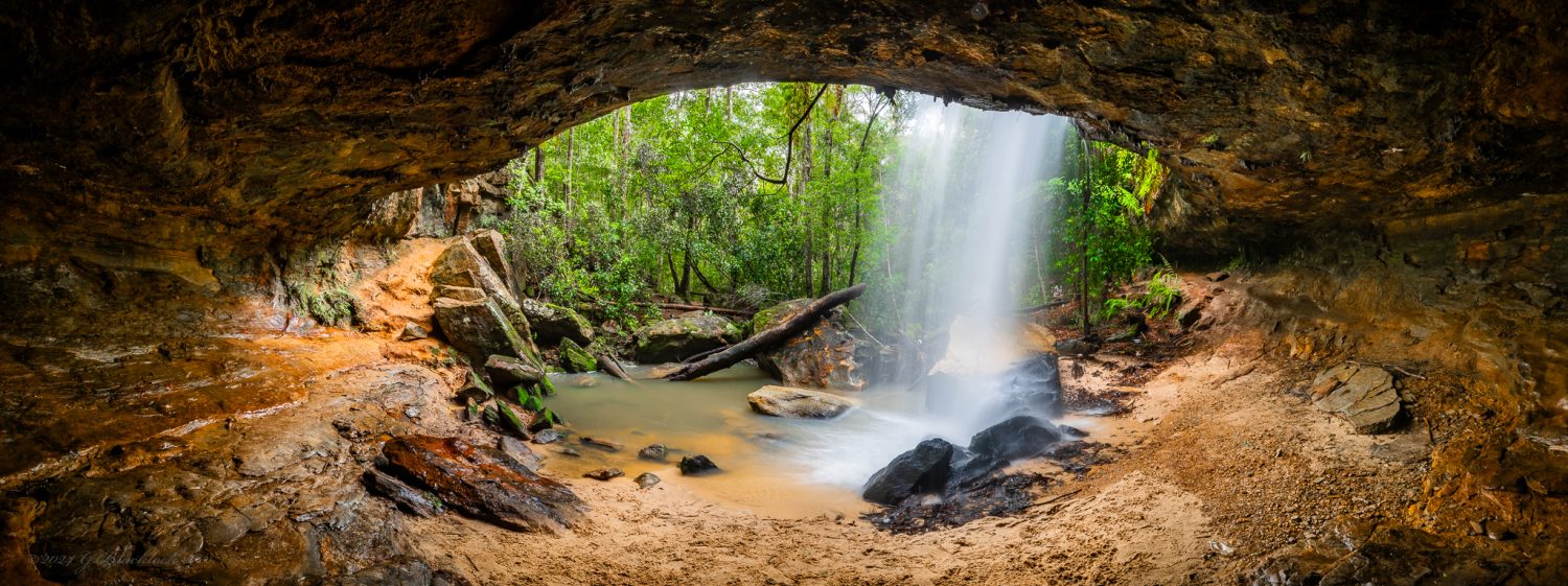 Its a pretty cool waterfall at Hazelbrook, sadly full of rubbish (god knows where from but humans is a good guess π ) and smells a little too close to your local sewer to be a coincidence… Two super wide panos from behind the waterfall curtain, shot at 16mm and about 11 or 12 shots stitched together to give the 180 degree field of view…. did not fall on my arse in the mud either, which was a bonus.