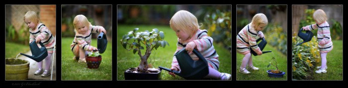 A gardener, very nice to see. Don't want to disappoint, but umm a big bonsai would then be a tree. And a tree aint going to grow in a pot that small. Hmmmm not sure where I was going there, but tickles is obviously a caring little human. A good reflection of her parents.