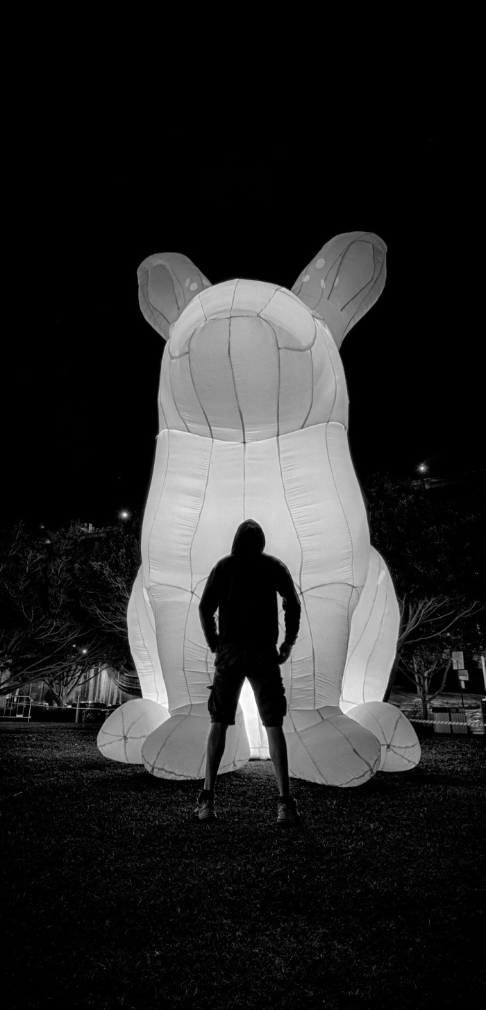 Gerry vs the Bunny Posted on May 23, 2014 by gerry gerry ftw. Brilliant artwork by Amanda Parer – a true artist, she makes bunnies and thats just plain cool. http://www.amandaparer.com.au/ #vividsydney #+Vivid Sydney