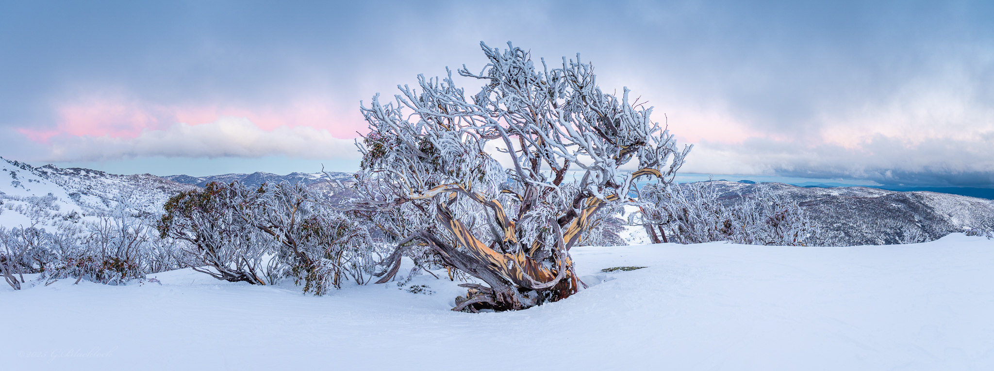 Snow Gum Posted on September 9, 2025 by gerry Snow Gum No blazing sunsets this day, but a very cool subtle band of colour in the opposite direction It was no accident that the campsite was literally just around the corner from this tree 🙂