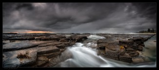 It is however a blend of two exposures, i basically had a short exposure to freeze any movement in the two umbrella dudes and a second exposure of long shutter speed to enable the detail in teh sky and the little gully to be brought out.