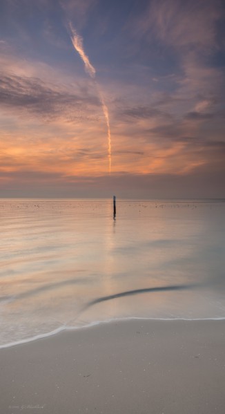 I used a pano head to capture the shots which made it alot easier to stitch the frames together, in this case I used PTGUI, however even with the pano head there where still a few dodgy stitch errors, one you can see if you zoom next to the sun you can see the horizon is not quite perfectly aligned (did not notice this until it was all finished 🙁 ), however another issue was the slight misalignment of the jetty poles and also the distortion in them, even after using PS adaptive wide angle to correct the image and straighten things up there was still some funny bent jetty poles, not that bad, but just enough to be annoying. I used a new technique (for me) to tweak this, I used the liquidify filter in PS to just to squeeze the poles back to a straight profile, worked relatively well i reckon .