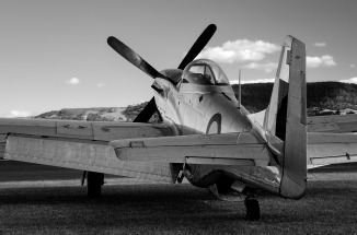 P-51 against the hills.