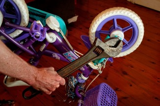 sigh, not only do I have fix a kids bike with training wheels I gotta do it with the only tool I have at the moment, a supersize shifter, here i am using a shifter designed for ~2" nuts with bloody 3/8" nuts..