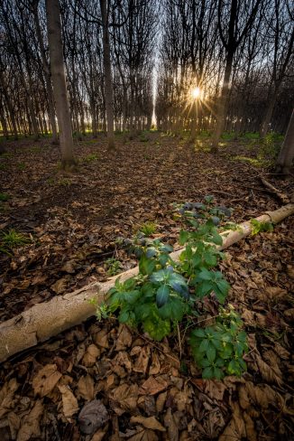 Using a feature in the landscape to take the edge away from the sun can be you capture shots like this using single exposures, in this case, this panorama was 3 separate shots stitched together. Placing the sun just behind a branch on the frozen tree meant that the dynamic range of the scene could still be captured by the camera in one exposure as opposed to bracketing the frames..