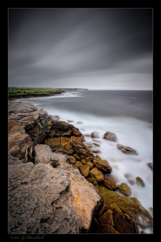 This small trail of rocks etched out of the sand at Collaroy reminded me of a kids fairy tale of a place where a dragon should be sitting, right out there on that rocky outcropping, ready to lunge and eat up any child who did not bring home their lunch containers… i'm looking at you here Chaos 🙂 . Scene is complete with greenish yellow dragon poo, aka seaweed 🙂