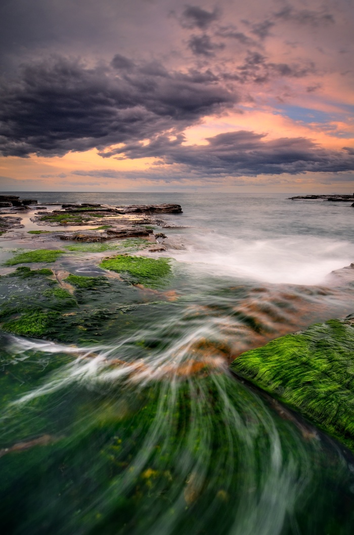 Nestled into a little corner on the South Coast is a sleepy little suburb called Wombarra which has a sneaky little secret – this delightful little rock shelf. Although, it is like walking on a ice rink 😉 Its also delightfully green, my favorite seascape colour 🙂